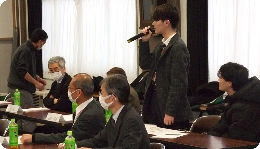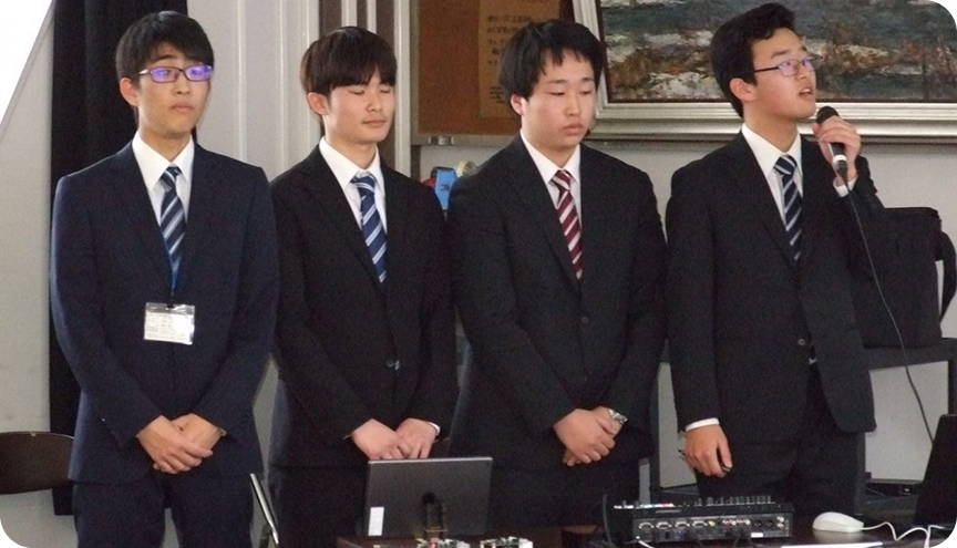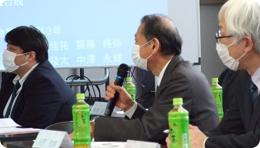2月5日(月)に本年度の成果を発表する研究報告会がありました。信州大学からは学部長ほか指導教官の先生方、大学院生の皆様にご参加いただき、1年間ご指導いただいたテーマの成果を3年生が発表しました。