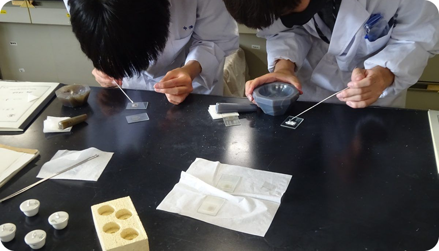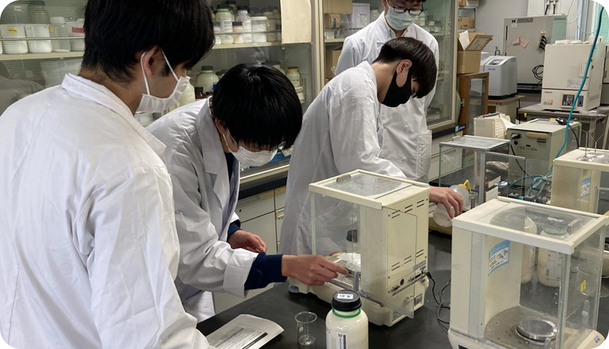 物質化学科3年生の生徒4名は信州大学工学部物質化学科の山口准教授よりご指導をいただいております。