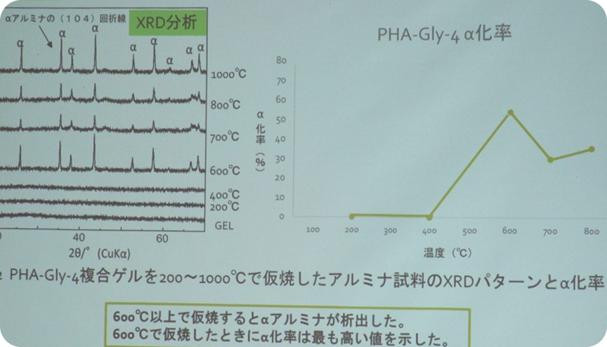 | 物質化学科 | アミノ酸ーAl錯体複合ゲルを用いるαアルミナの低温合成(工学部・物質化学科) |