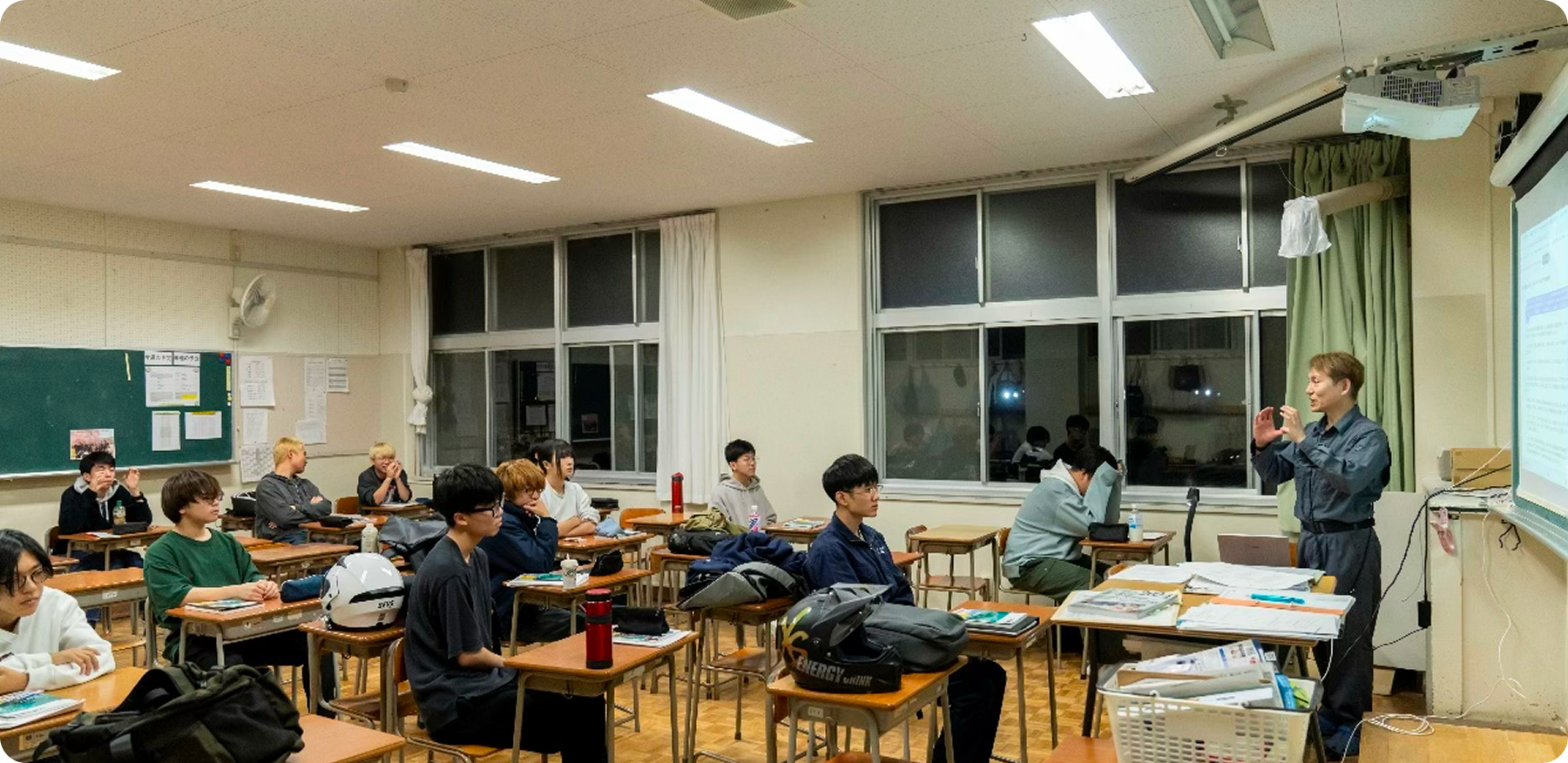 | 夜間定時制 | 夕方5時頃から、夜8時30分~9時頃まで |