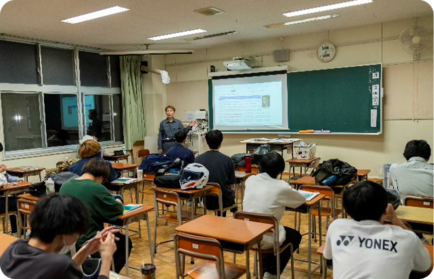 | 19:05~19:50 | 3時限:実習 | 実習室(グループに分かれて) |