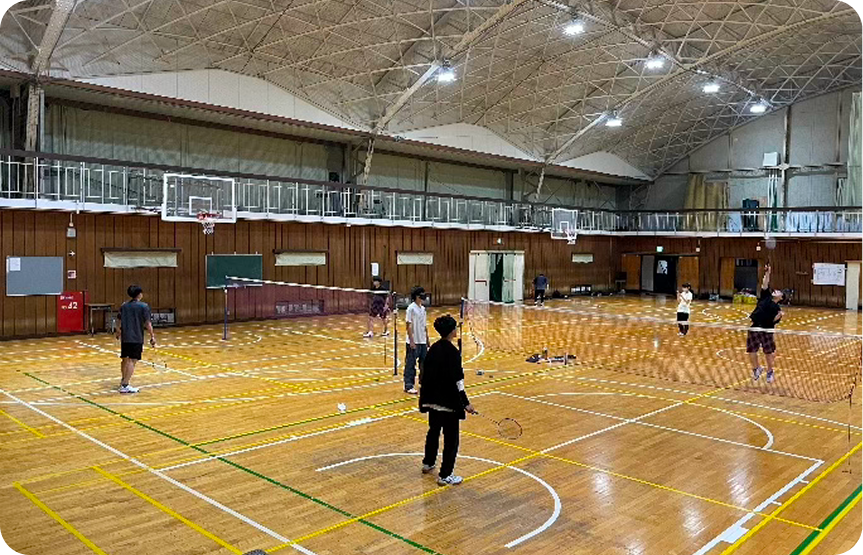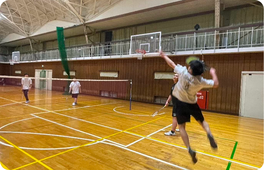 運動班はバドミントン班と卓球班、文化班は基礎工学班と建築班が授業後に活動しています。